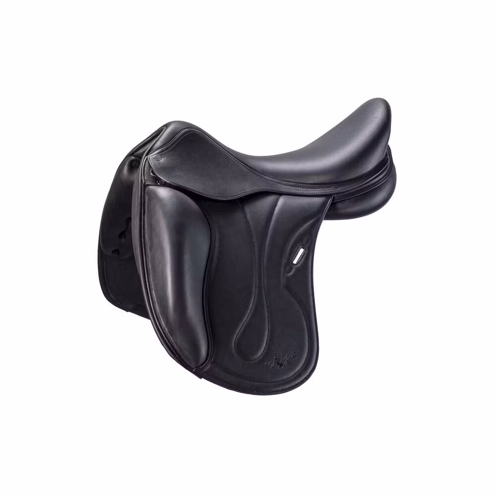 Sadeln är sydd i kalvskinn och finns i svart, mörk brun, ljus brun och röd brun.